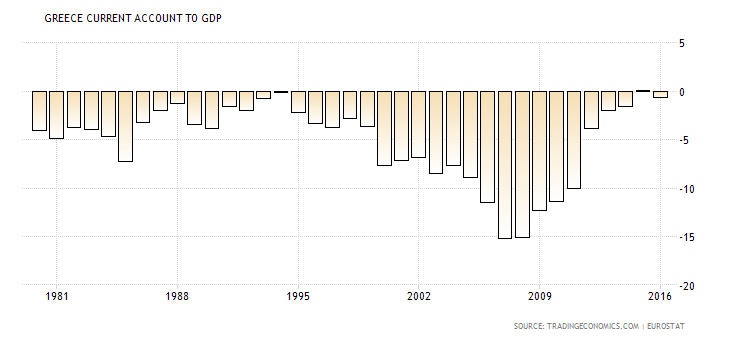 Το γεγονός αυτό, σε συνδυασμό με την εκτόξευση των ελλειμμάτων του ισοζυγίου τρεχουσών συναλλαγών που επίσης διευκολύνθηκαν από την τεχνητή άνοδο του ΑΕΠ(γράφημα), οδήγησαν τη χώρα μας στα όρια των δυνατοτήτων της το 2009 – όπου δυστυχώς εξελέγη μία κυβέρνηση που είτε από ανοησία, είτε από ενδοτισμό, έδωσε τη χαριστική βολή στην Ελλάδα, πιθανότατα σε συνεργασία με τον διοικητή της ΕΛΣΤΑΤ και στέλεχος του ΔΝΤ.