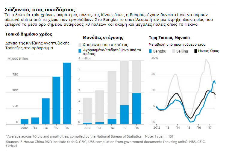 (γ) Σε κάποιες περιοχές παρατηρείται παρόλα αυτά πτώση των τιμών των ακινήτων (αποτελούν το βασικό αποταμιευτικό εργαλείο του 75% των Κινέζων έναντι μόλις 28% των Αμερικανών) της τάξης του 30%, με αποτέλεσμα οι ιδιοκτήτες να ξεσηκώνονται και να διατηρούνται στην τάξη από τις πολιτοφυλακές – σημειώνοντας πως οι κοινωνικές αναταραχές αποτελούν το νούμερο ένα εφιάλτη της κυβέρνησης.
